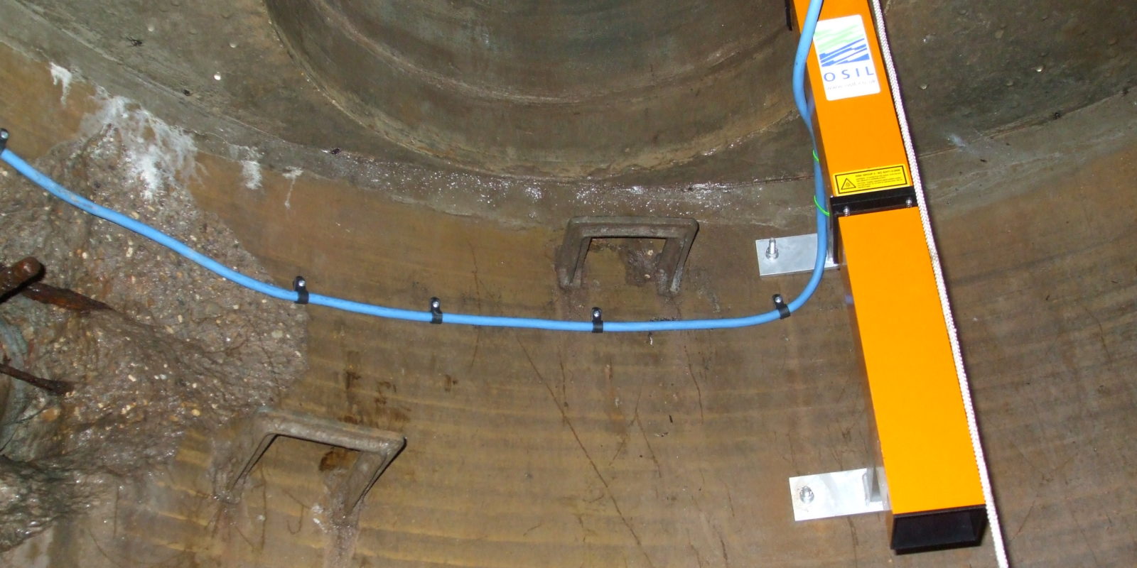 The remote optical sensor is installed looking downwards, up to 10m meters above the water level. The sensor technology is based on fluorescence excitation and detection. Due to the very low power consumption it is possible to use directly connected to AC or via a solar panel / battery set-up, the unit can be continuously unattended and requires very little maintenance. The system automatically filters out ambient conditions (e.g. sunlight), providing highly reliable detection under all light, weather and water surface conditions.